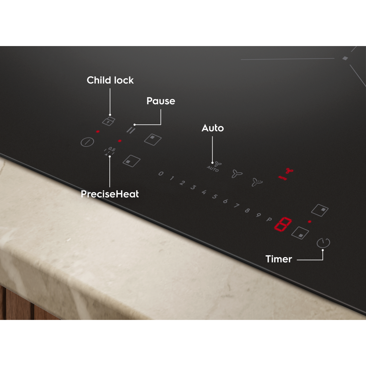 Autarkes Kochfeld mit integriertem Dunstabzug / 80cm / Rahmenlos