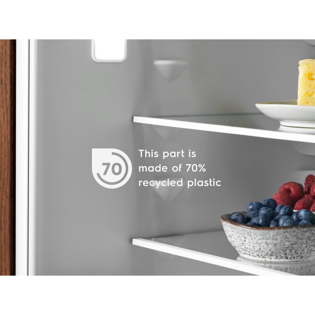 * Das Material der Innenauskleidung besteht zu 70 % aus recyceltem Kunststoff, insgesamt sind das 13 % des gesamten im Kühlschrank verbauten Plastiks.”