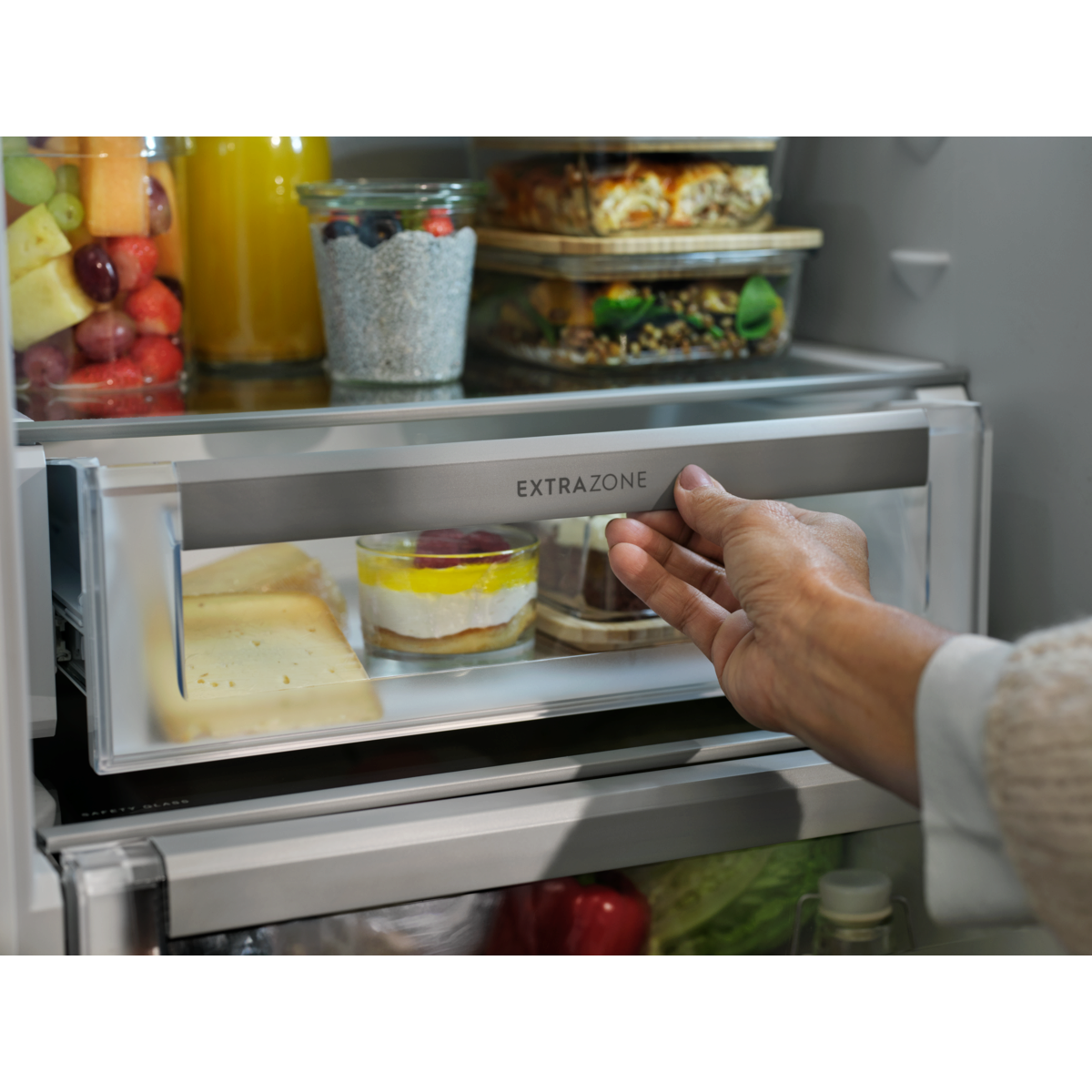 Die DynamicAir-Technologie erzeugt einen Luftstrom, der die kühle Luft im Kühlschrank verteilt, damit die Temperatur in jeder Zone konstant bleibt. Schützt Lebensmittel vor Formveränderung oder Austrocknung.
