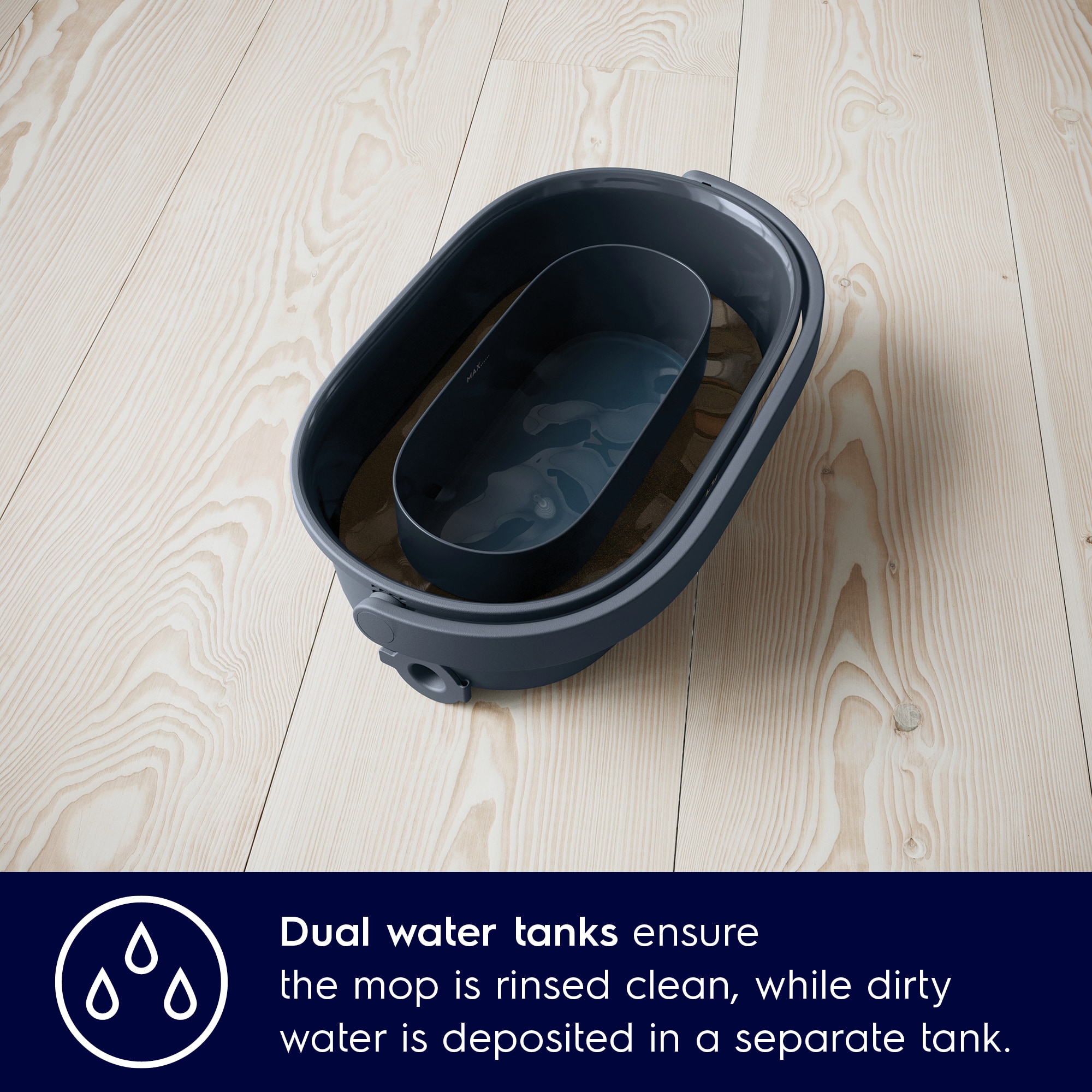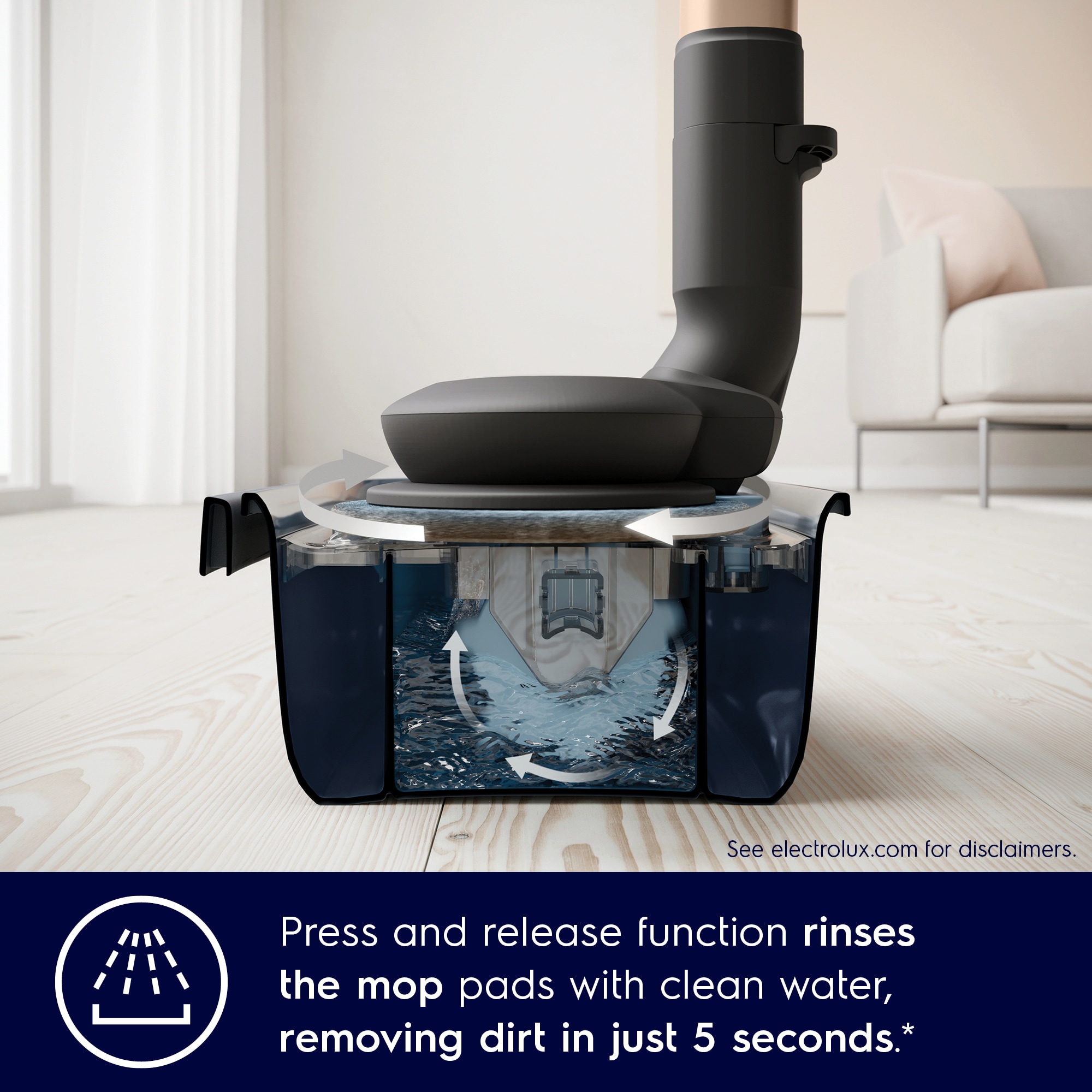 *5 Sekunden sind die empfohlene Spülzeit, um Schmutz und Ablagerungen von den Wischpads zu entfernen. Basierend auf internen Tests von Electrolux.