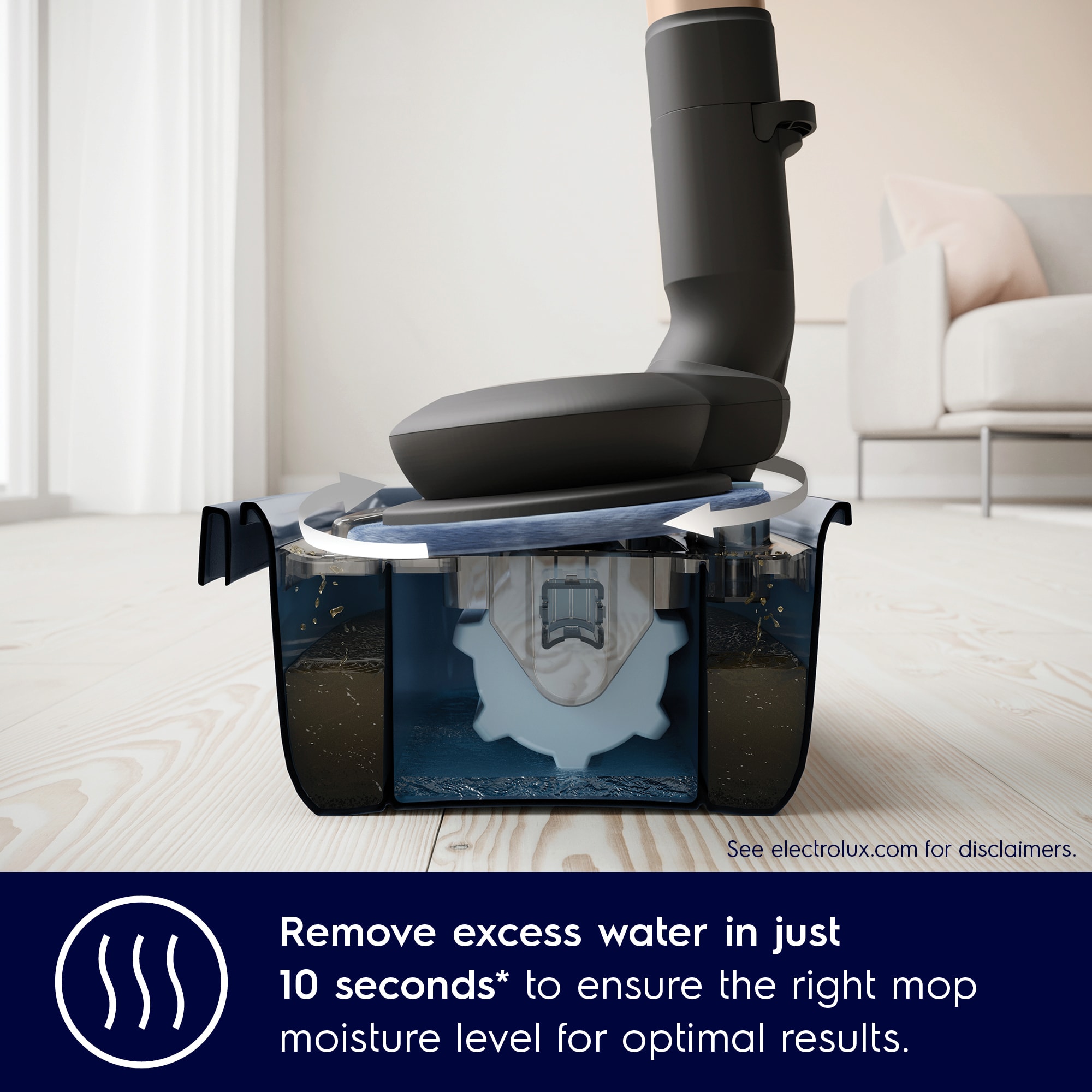 *10 Sekunden ist die empfohlene Spülzeit, um einen optimalen Feuchtigkeitsgehalt der Pads für die Reinigung im Haushalt zu erreichen. Basierend auf internen Tests von Electrolux.